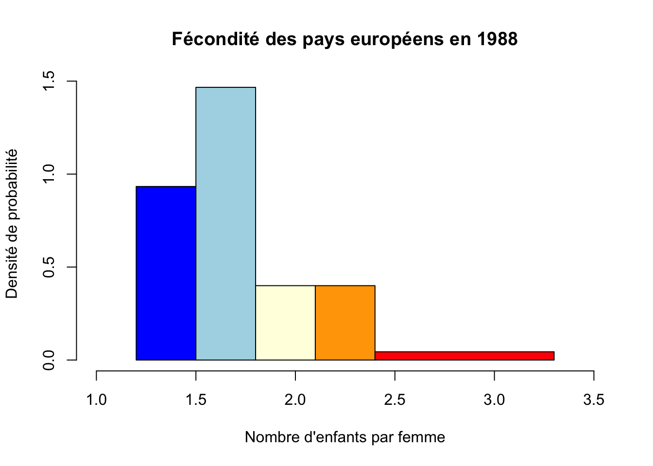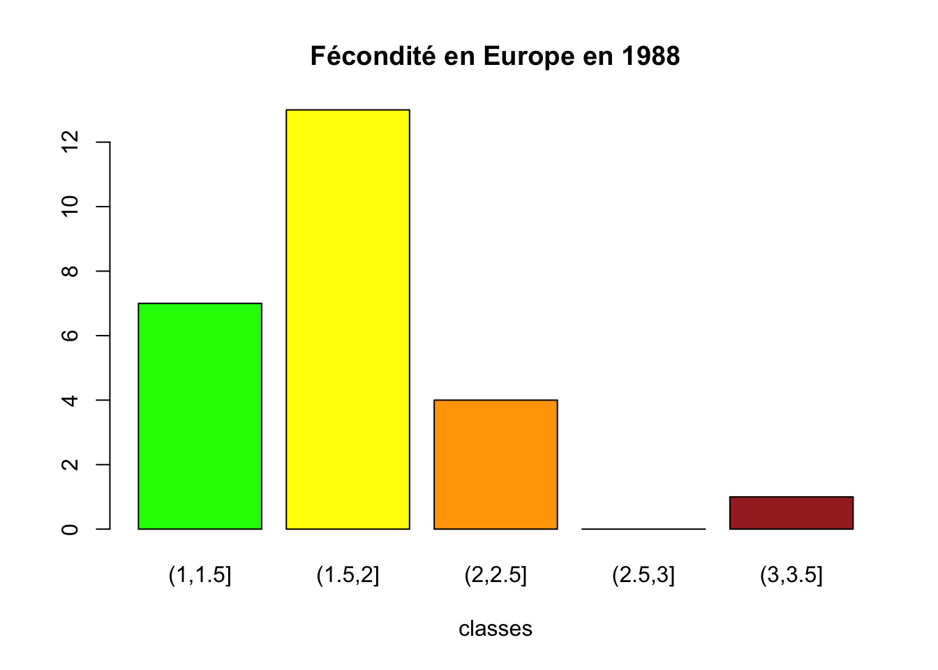 main = "Fécondité en Europe en 1988", xlab = "classes")