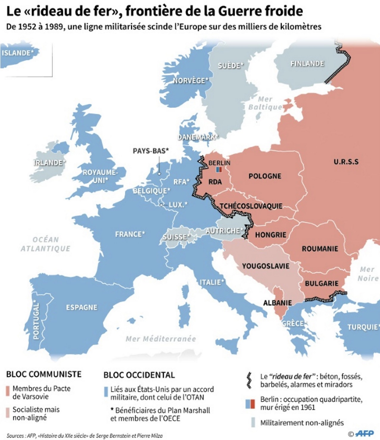 Pour rendre l’apprentissage moins austère, nous avons choisi un tableau de données original qui présente les principales caractéristiques de 25 pays européens en 1989, à la veille de la chute du Mur de Berlin. Pour ceux qui ne connaissent pas cette période ancienne, voici une petite carte :