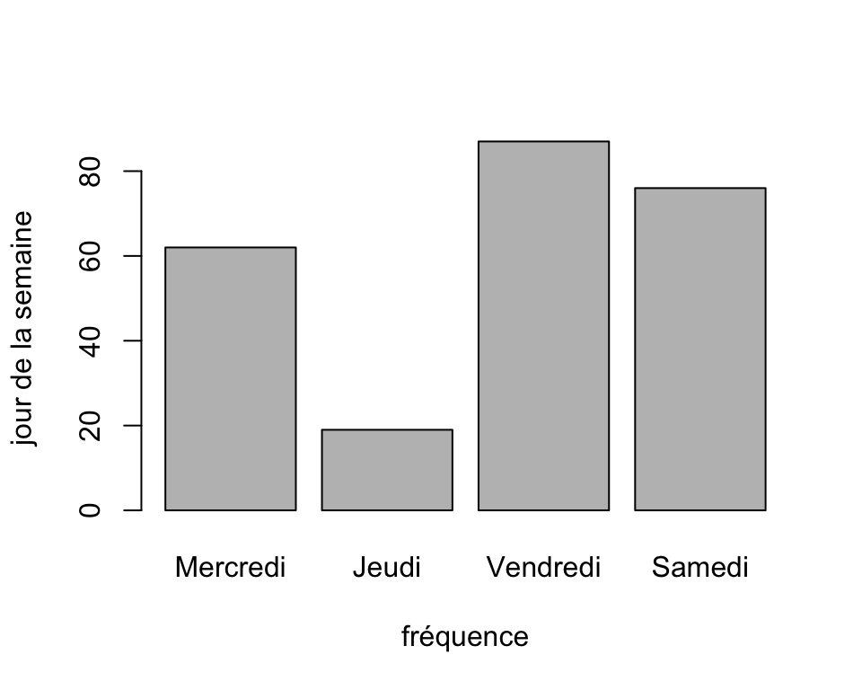 levels(don$DAY)<-c("Mercredi","Jeudi","Vendredi","Samedi")