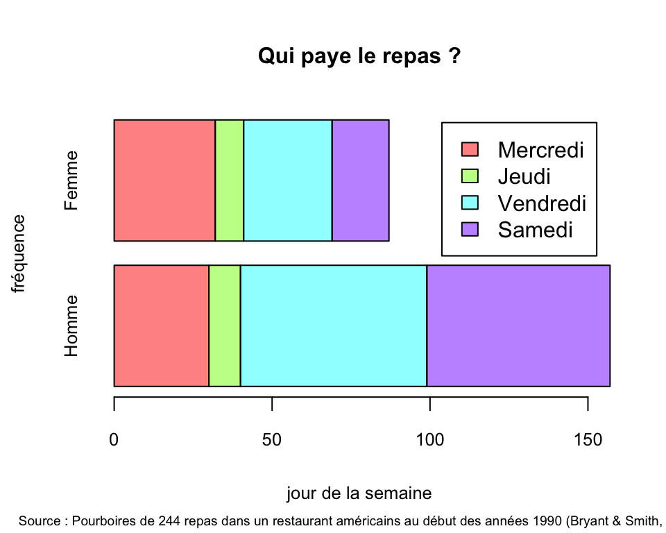 On remarque que les hommes paient plus souvent le repas que les femmes le vendredi et surtout le samedi …