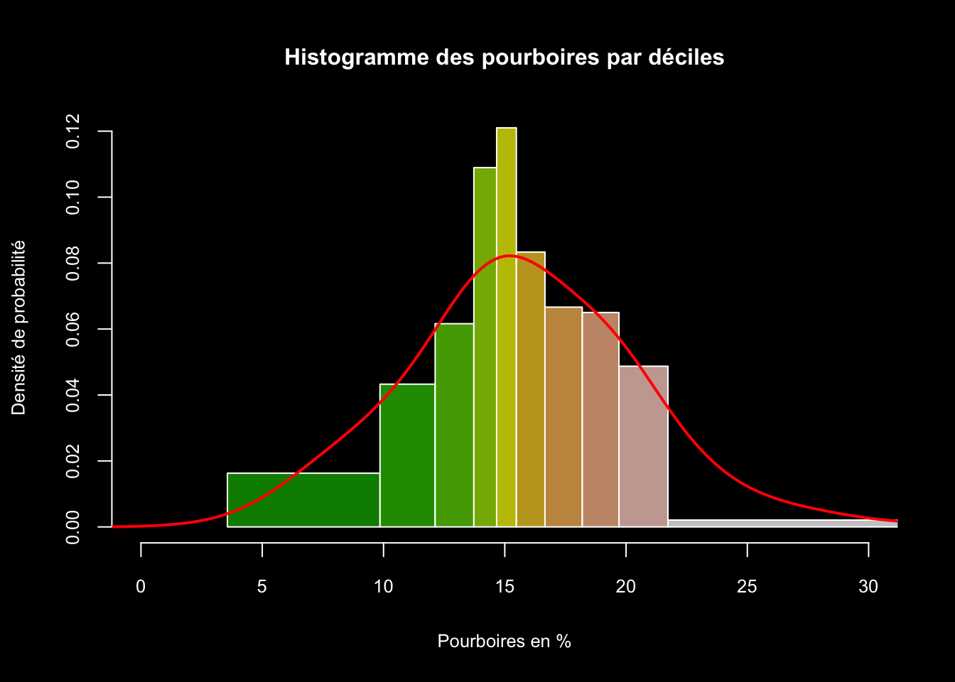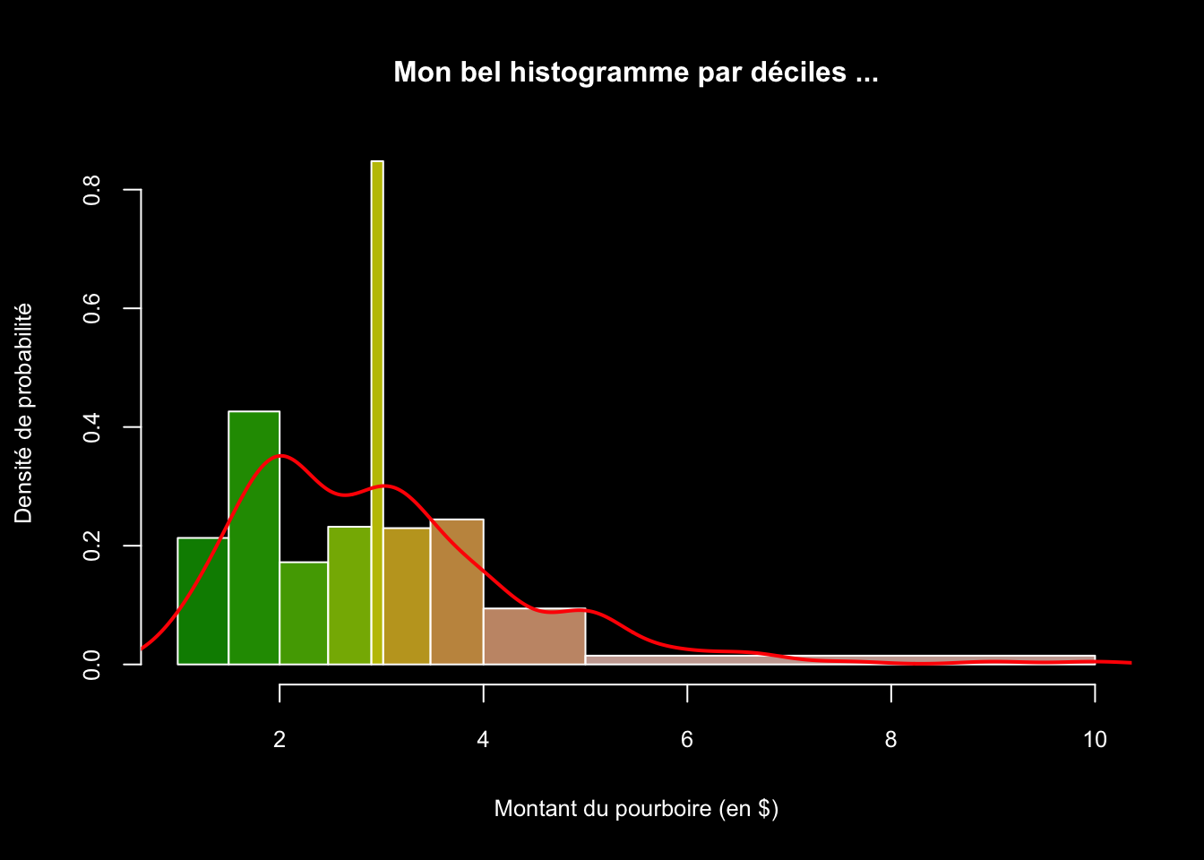 hist(don$PCT, main="Histogramme", xlab="Pourboires (%)")