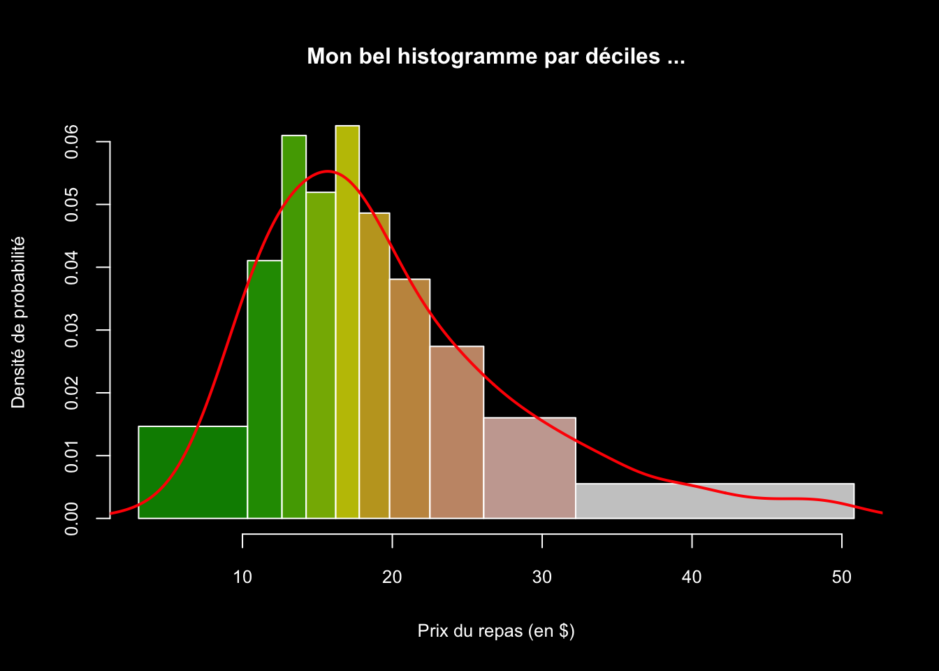 monhist(don$TOTBILL,"Prix du repas (en $)")